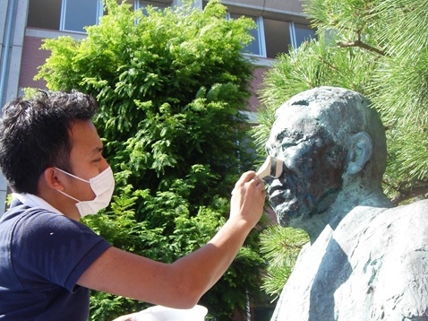 お神輿銅像も修復